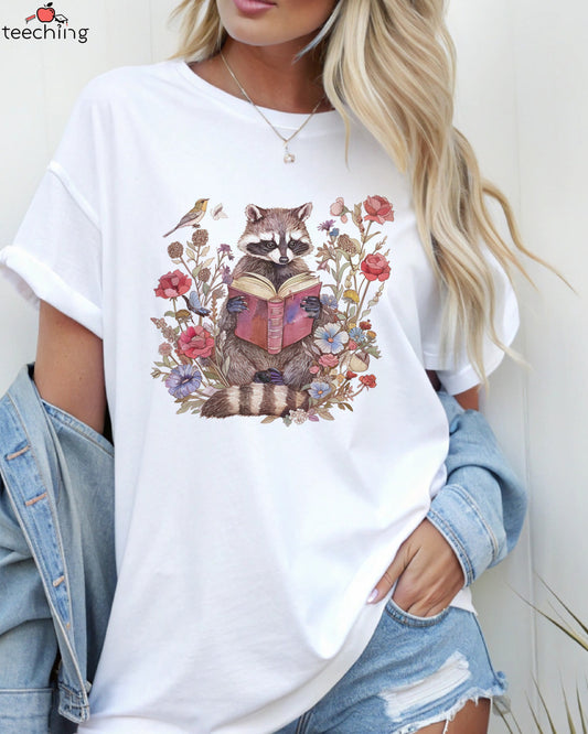 Boho Floral Raccoon Reading Book Shirt